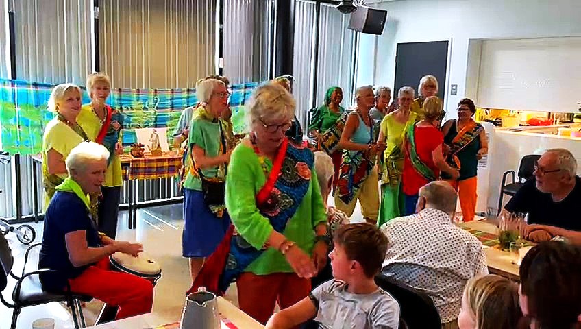 In de week na moederdag – 10 mei – was het feest in Rigtershof: er werd een Afrikaanse week gehouden. Door corona was die al een paar keer uitgesteld, maar nu was het eindelijk zover. En Kuzola leverde hier een aandeel in door een spankelend optreden voor de bewoners en het personeel